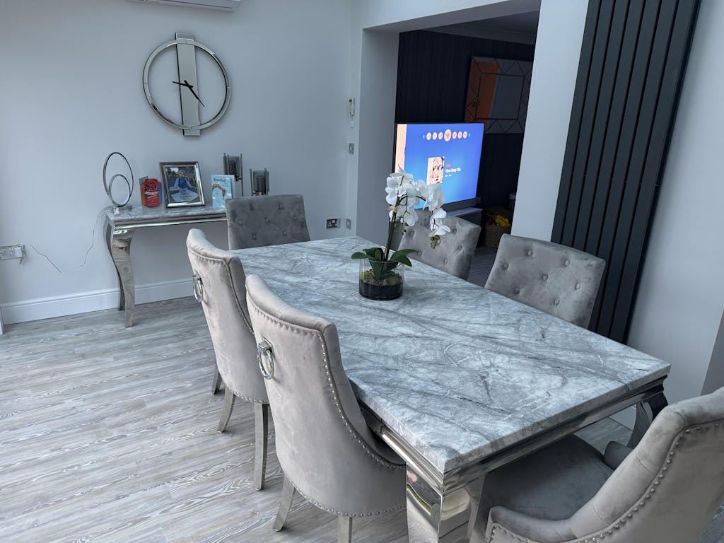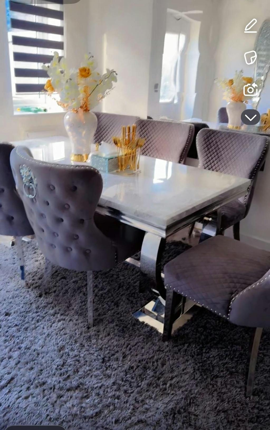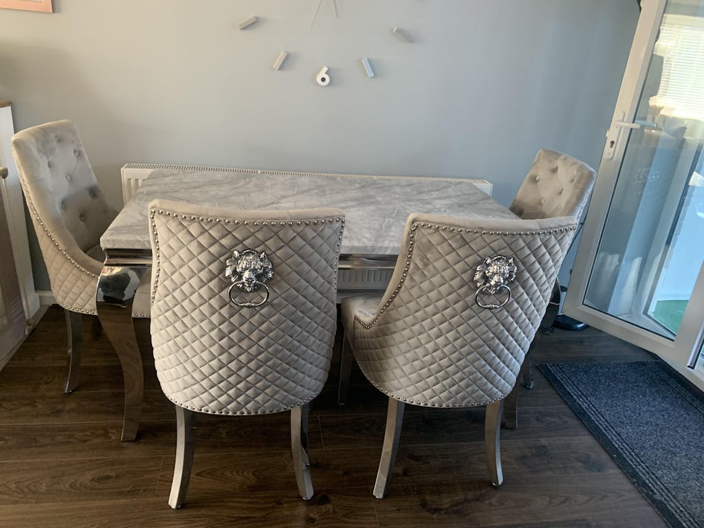 We are chuffed to bits with our marble table and chairs. The chairs are so comfortable and the table is stunning. The delivery team were very informative, professional and friendly. All round great purchase, thank you so much.