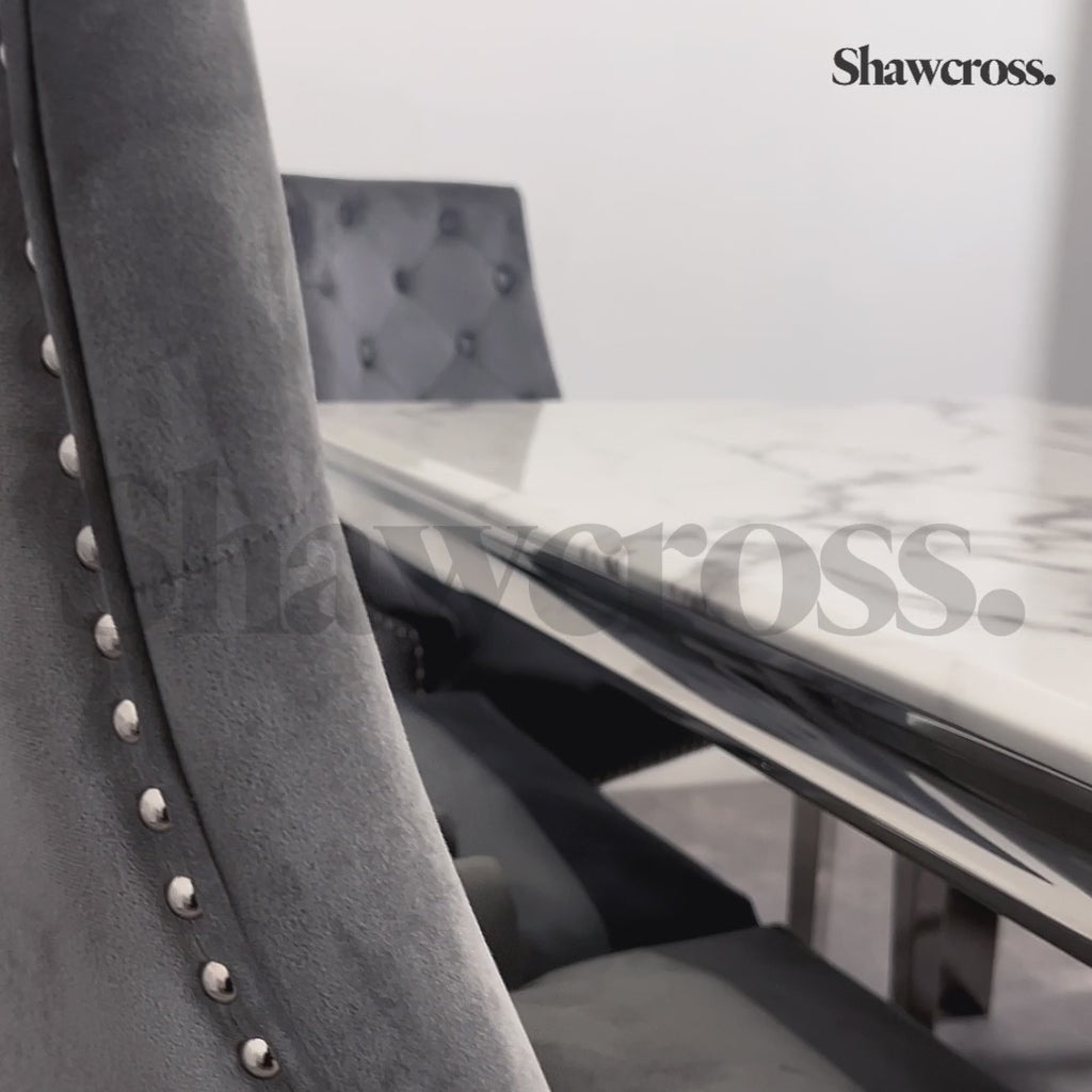 Louis Marble 1.8M Or 1.5M Dining Table And Cheshire Plush Velvet Knocker Chairs