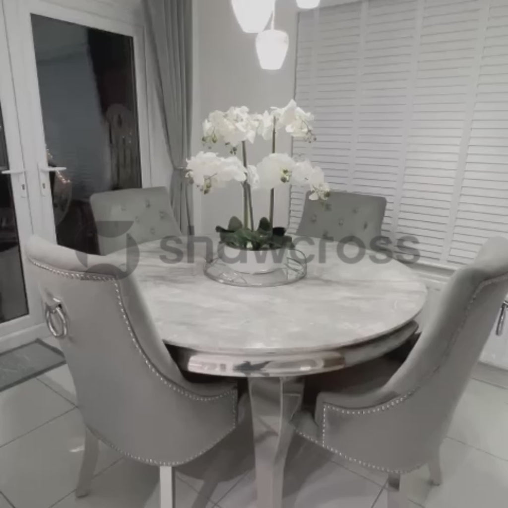 Louis Round 130Cm Marble Table With 4 Cheshire Knocker Back Chairs