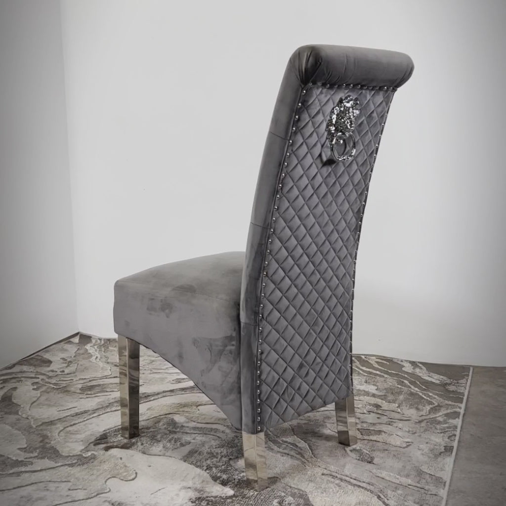 Pair of Lucia Grey plush velvet Quilted lion knocker Dining