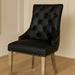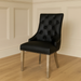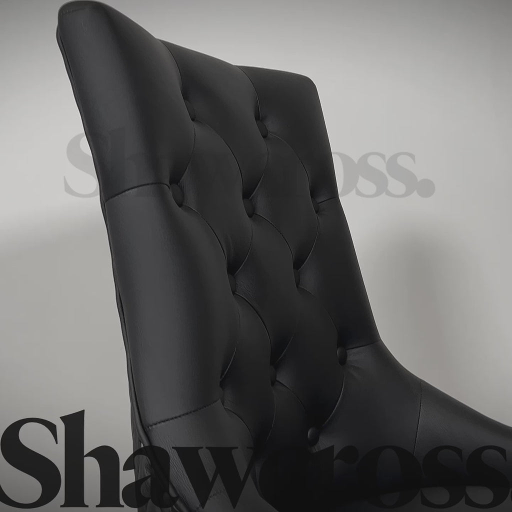 Pair of Bentley black leather knocker dining chairs lions head